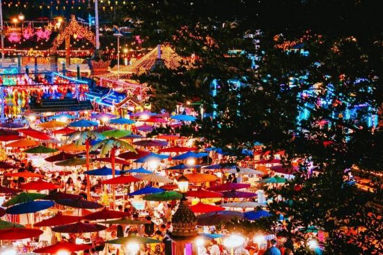 雲(yún)南省西雙版納?傣族自治州告荘西雙景景勝地の星光夜市(撮影?曾智慧)。