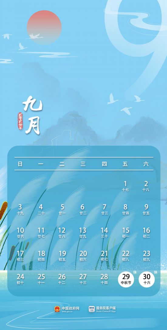 六、中秋節(jié)(舊暦8月15日)、國慶節(jié)(建國記念日):9月29日から10月6日までの8連休。10月7日(土曜日)と10月8日(日曜日)は振替出勤日。