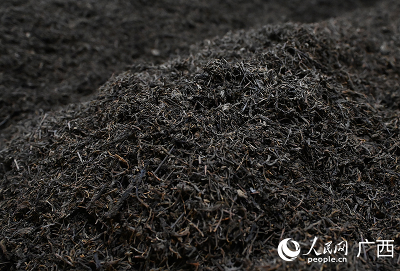60日間「渥堆」して発酵した六堡茶(撮影?沈泉池)。