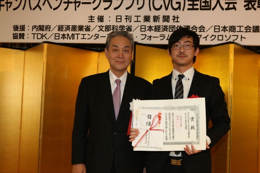 ちょうどその時(shí)期、キャンパスベンチャーグランプリ全國(guó)大會(huì)が開(kāi)催されるのを知り、チャレンジ精神に富んだ胡さんはその大會(huì)に參加することにしたのだという。大會(huì)は5つの地域に分かれ、彼のアイデアは思いがけずその地域の1位となり、地域代表として全國(guó)大會(huì)に進(jìn)出し、そして全國(guó)712のチームから見(jiàn)事全國(guó)1位を勝ち取り、「経済産業(yè)大臣賞」と「ビジネス部門(mén)大賞」を受賞した。