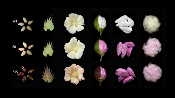 同研究はまずベタレインの合成と関連する3つの鍵遺伝子のコドン最適化を行い、綿花品種「中綿所49」を受容體とするベタレインを豊富に含む綿花新材料を創(chuàng)出した。構(gòu)成的なプロモーターの駆動(dòng)により、綿繊維及びその他の組織がピンク色を呈するようになった。繊維の特異的プロモーターの駆動(dòng)により、綿繊維のみがピンク色を呈した。成熟した繊維に含まれるベタレインの濃度は液胞の分解により低下し、色が淺くなった??茖W(xué)研究者は今後、ベタレインが色褪せず沈積するためのメカニズムについてさらなる研究を行う計(jì)畫だ。(編集YF)