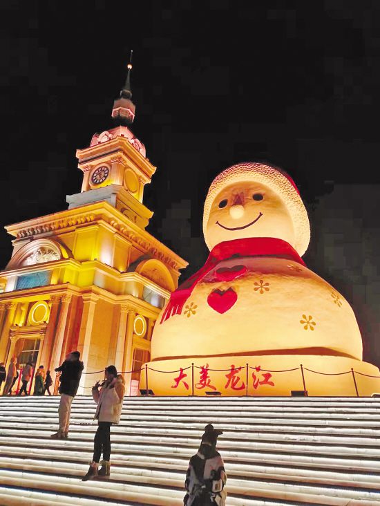 群力音楽公園の「微笑む巨大雪だるま」の人気はすでに広く知られており、トレードマークである赤い帽子とマフラーが、人々に強(qiáng)いインパクトを與えてきた。今年も音楽公園では「微笑む巨大雪だるま」が満を持して登場(chǎng)。雪だるま作りの作業(yè)が始まると、ネットユーザーたちの間ではベールに包まれた「全貌」への興味が高まり、完成後には首を長(zhǎng)くして待っていた數(shù)多くの観光客や市民が一目見(jiàn)ようと足を運(yùn)んでいる。