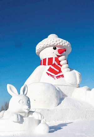 2023年の干支がウサギであるのに合わせて、雪まつりの會(huì)場(chǎng)となっている哈爾浜氷雪大世界には、可愛(ài)らしいウサギの雪だるまが登場(chǎng)した。プクプクした手に、ぽっちゃりした可愛(ài)らしい顔がチャームポイントで、完成すると、たちまち多くの観光客がやって來(lái)て、記念寫真を撮影するようになっている。