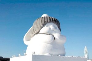 太陽(yáng)島公園の正門前には、非常に個(gè)性的なスタイルの巨大雪だるまが作られている。その表情は実にコミカルで、とぼけた「変顔」をした雪だるまは、訪れた人を楽しませようという気概に溢れていると言えるかもしれない。
