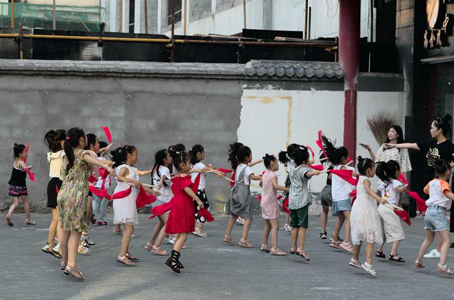 カメラを持って路地を散策していたら、幼い女の子たちが先生方の指示に合わせてダンス(?)の練習(xí)をしているところに出會いました。何かイベントがあるのでしょうか、女の子たちが持つ紅色の旗が中國的だと思い、思わず一枚撮りました。