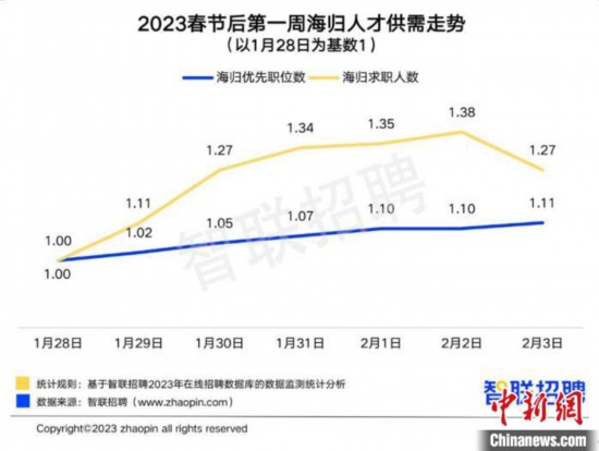 2023年の春節(jié)(舊正月、今年は1月22日)明けの第1週に上昇カーブを描いた留學(xué)帰國者の需要と供給。