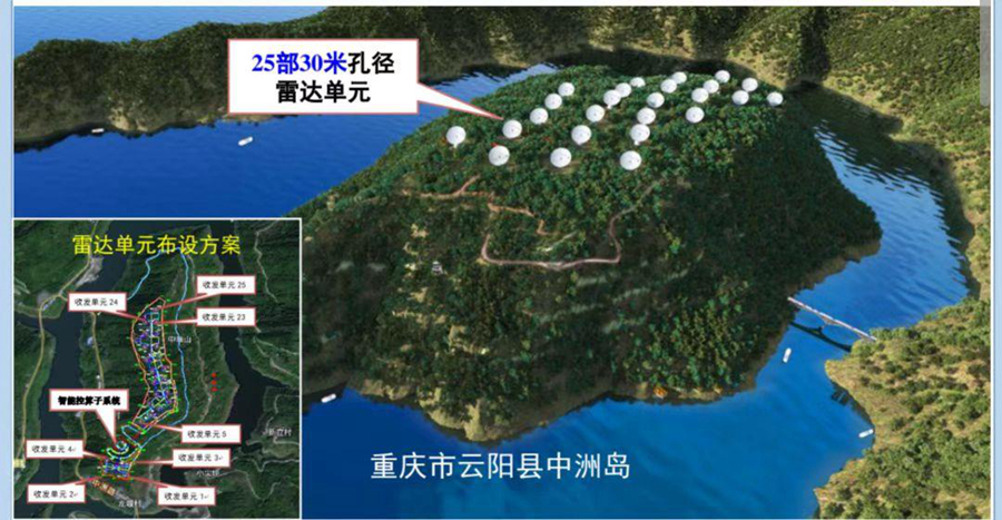 北京理工大學(xué)が建設(shè)を主導(dǎo)する「中國復(fù)眼」プロジェクトは、雲(yún)陽県龍角鎮(zhèn)中洲島で建設(shè)され、総敷地面積20ヘクタール以上、30メートル口徑レーダーが25基設(shè)置される。小惑星、宇宙機、月、地球型惑星及び木星のガリレオ衛(wèi)星などの深宇宙目標(biāo)の高分解能観測により、地球近傍小惑星の衝突回避や宇宙狀況認(rèn)識などの國の重要な需要を満たすとともに、地球の居住性や惑星の形成などの世界の先端科學(xué)研究にサポートを提供する。
