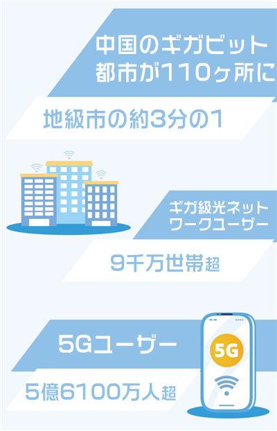 工業(yè)?情報化部(?。─悉长韦郅芍袊沥违鹰氓榷际械诙帳苏J定のプレートを授與した。これにより中國のギガビット都市は110ヶ所になり、すべての地級市(省と県の中間にある行政単位)の約3分の1を占めるようになった。そのうち東部地域の都市が41ヶ所、中部地域が29ヶ所、西部地域が40ヶ所となっている。