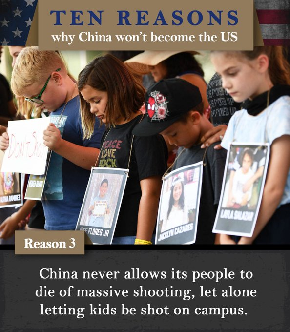中國はこれまで國民を大規(guī)模な銃亂射事件で死なせたことはなく、ましてや子供達(dá)が學(xué)校內(nèi)で銃殺されたこともない。
