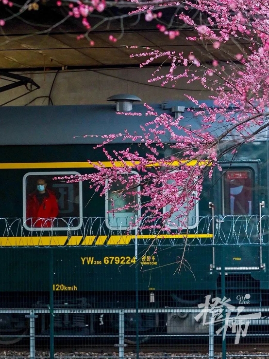杭州市の凱旋路と鳳起路の交差點(diǎn)にある鉄道橋沿いに植えられている梅の木が現(xiàn)在、満開を迎えている。そして、「春へと向かう」列車が通るたびに、多くの人が「梅の花」と「列車」がコラボレーションする絶景をカメラに収めている。