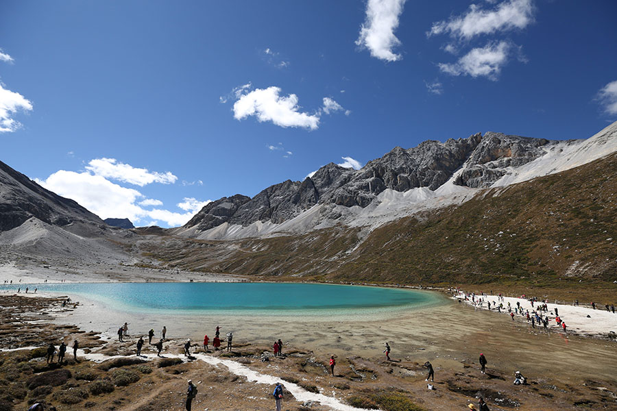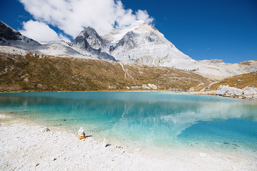 標高4700mにある稲城亜丁を旅行したときのものです。紺碧の空、湖の湖底まで見渡せるような美しい湖、夜は手が屆くかのような満天の天の川。