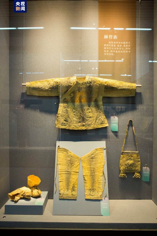 赫哲族の魚皮衣、ズボン、鞋、カバン(20世紀(jì)後半)。