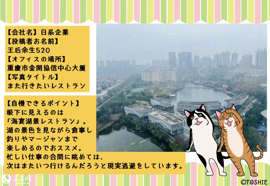 人民網(wǎng)では、ウチのオフィスの窓からはこんな風(fēng)景またはこんなモノが見えるという自慢をしていただく「マドコレ(窓から見た風(fēng)景コレクション)」を毎週火曜日に掲載中!オフィスの窓からの眺めでもよし、お仕事中の窓からの眺めでもよし、とにかく窓から眺めた様子を?qū)懁筏繉懻妞趣饯欷摔蓼膜铯毳ē豫僵`ドをご投稿ください!