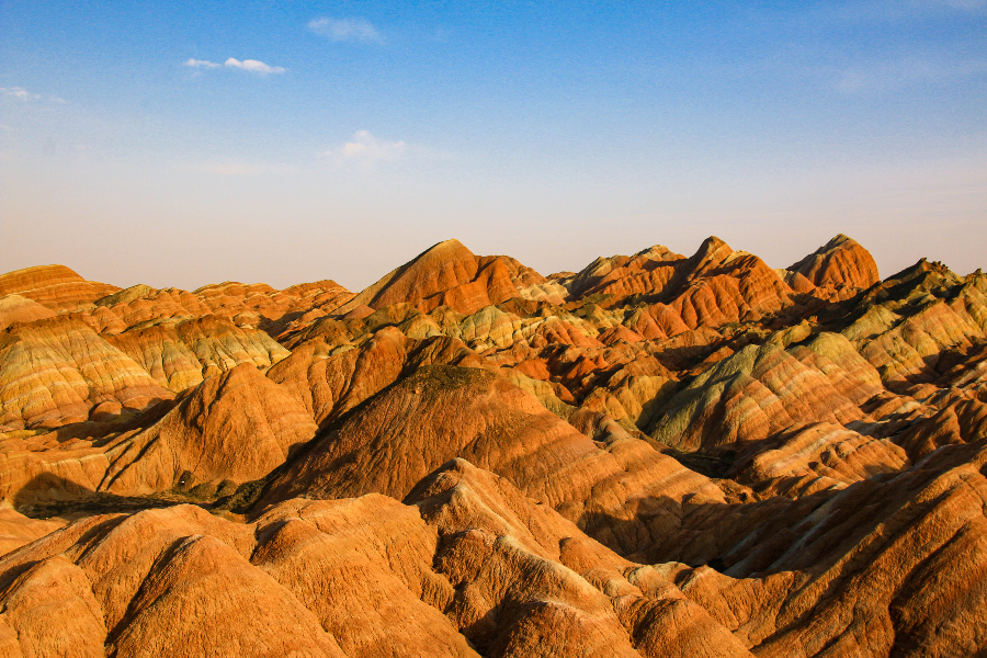 世界の絶景寫真集でひと目見(jiàn)てからずっと憧れていた「張掖丹霞地貌(ちょうえきたんかちぼう)」。夜行列車やバスを乗り継いで目の前に現(xiàn)れた風(fēng)景は圧巻の一言だった。堆積巖が隆起してできた縞模様の巖山が夕日に照らされ、色彩豊かな景観を生み出している。中國(guó)の自然はスケールが大きく驚かされることばかりだったが、なかでもこの景色はまるで別世界に來(lái)たかのようで強(qiáng)く印象に殘っている。