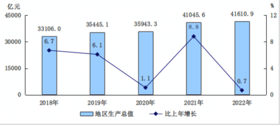 現(xiàn)時(shí)點(diǎn)で、2022年の北京のGRPは前年比0.7%増の4兆1610億9000萬(wàn)元と試算されている。うち、一次産業(yè)が1.6%減、二次産業(yè)が11.4%減だったのに対して、三次産業(yè)は3.4%増だった。
