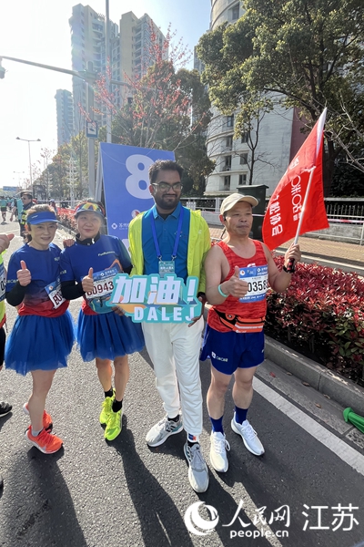 ランナーに聲援を送る外國(guó)人ボランティア(撮影?呉洪躍)。