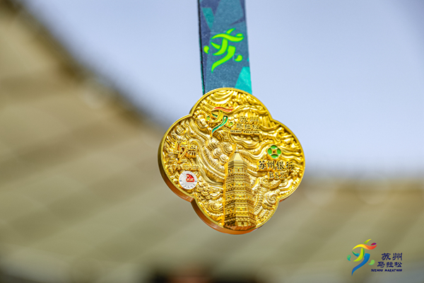 今回の蘇州マラソンのメダルも工夫を凝らしたデザインとなっていた。表は古代蘇州の造園のシンボルでもあるカイドウの形をした花窓をモチーフにし、花窓の中に、超高層ビル?東方之門(mén)が彫られている。裏には蘇州で最も歴史と文化の特色を備えたランドマーク?虎丘塔が彫られている。そして、名前をそこに刻むことができるようになっており、完走者は「世界に一つだけのメダル」を受け取ることができた。