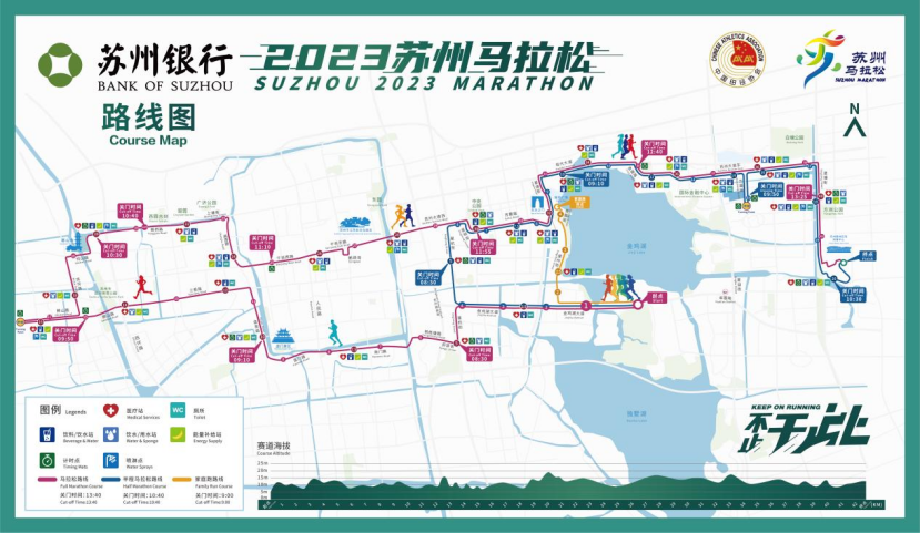 主催者によると、今大會(huì)では1萬(wàn)人がフルマラソンに、1萬(wàn)人がハーフマラソンに、5千人がファミリーマラソンに參加した。スタート地點(diǎn)は金鶏湖の湖畔で、蘇州工業(yè)パーク、姑蘇區(qū)、蘇州ハイテクパークを走りぬけるコースは、蘇州の重要な水系、ランドマークの観光地、賑やかな商業(yè)市街地を繋いでいた。そのため、ランナーは金鶏湖のほか、城の周囲にめぐらされた堀、盤(pán)門(mén)景勝地の大運(yùn)河、寒山寺、蘇州中心といったランドマークや特色ある景観を楽しみながら走ることができた。