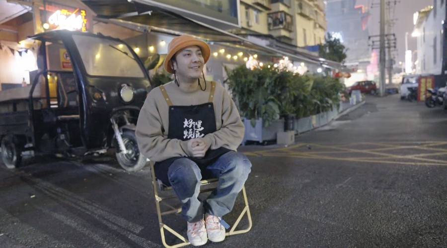 【新青年】長沙の繁華街の屋臺で焼き鳥を売る李胤さん