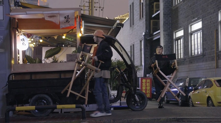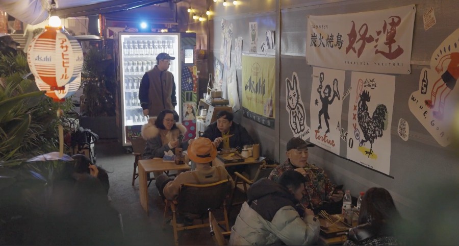 李胤さんが経営する焼き鳥屋「好運焼鳥」(撮影?袁蒙)。