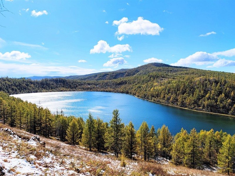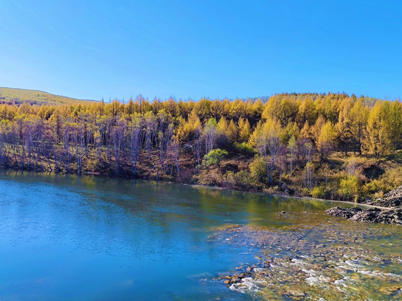 大興安嶺のカラマツや白樺の美しい紅葉を縫うように靜かに哈拉哈河が流れていました。金色に輝く紅葉の阿爾山、靜かに碧い水を湛える天池、いつまでも思い出に殘る阿爾山のすばらしい紅葉の旅でした。