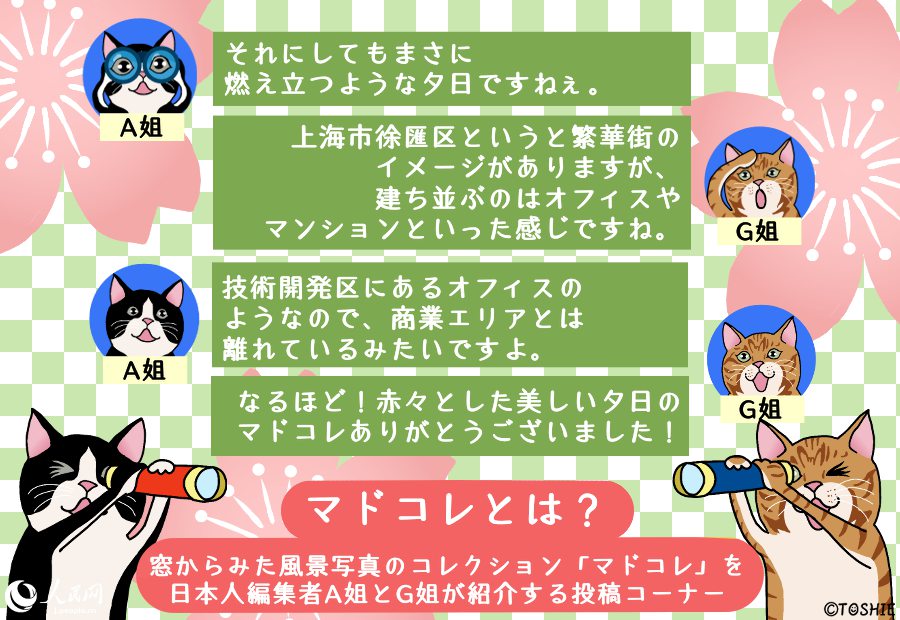人民網(wǎng)では、ウチのオフィスの窓からはこんな風(fēng)景またはこんなモノが見えるという自慢をしていただく「マドコレ(窓から見た風(fēng)景コレクション)」を毎週火曜日に掲載中!オフィスの窓からの眺めでもよし、お仕事中の窓からの眺めでもよし、とにかく窓から眺めた様子を?qū)懁筏繉懻妞趣饯欷摔蓼膜铯毳ē豫僵`ドをご投稿ください!
