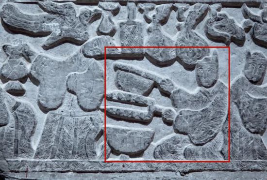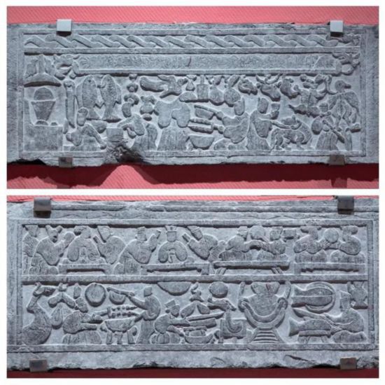 臨沂市の五里堡の漢代の畫像石「庖廚図」(セット、所蔵機(jī)関?臨沂市博物館)。