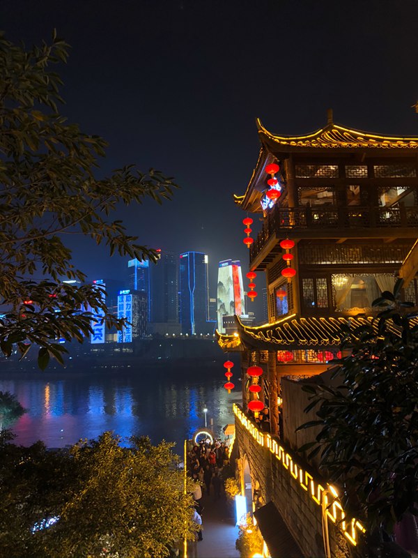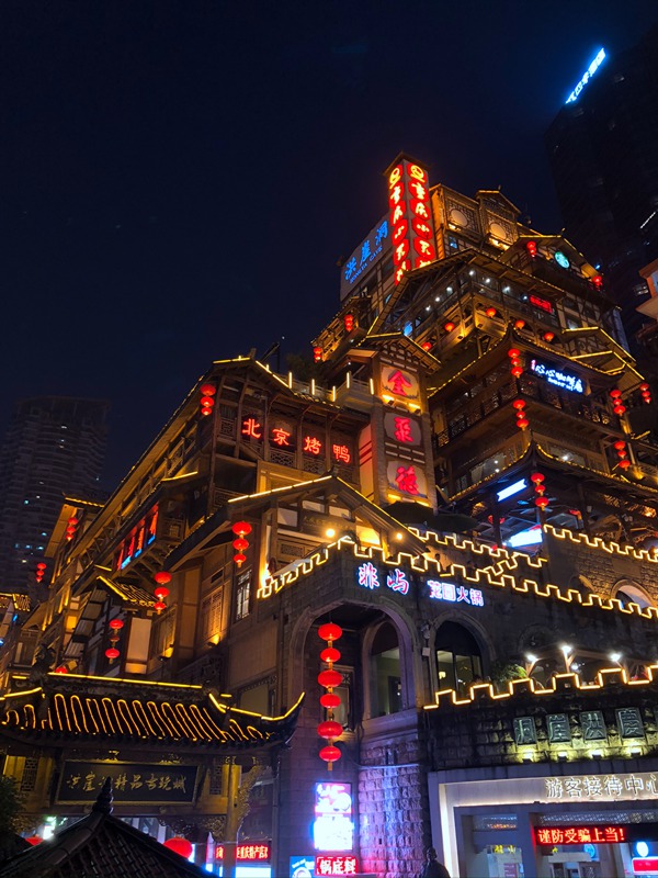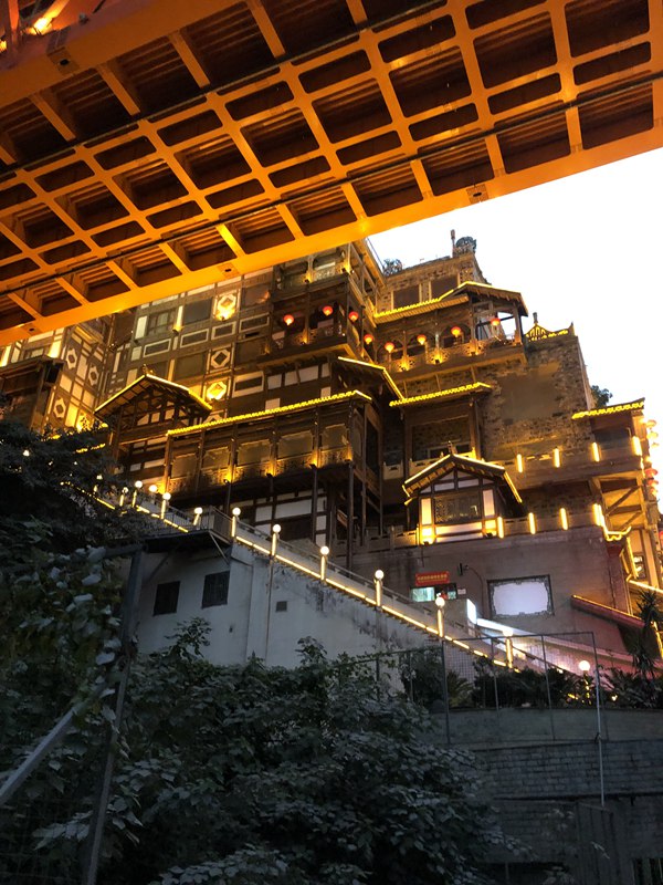 洪崖洞は、まるで映畫「千と千尋の神隠し」の世界。特に建物側(cè)面の様子が、映畫そっくりだと思いました。地上1階の入口から入って階段を上り、最上階から出たつもりが、実はそこもまた地上1階…という不思議がいっぱいの面白い重慶が感じられる場(chǎng)所です!