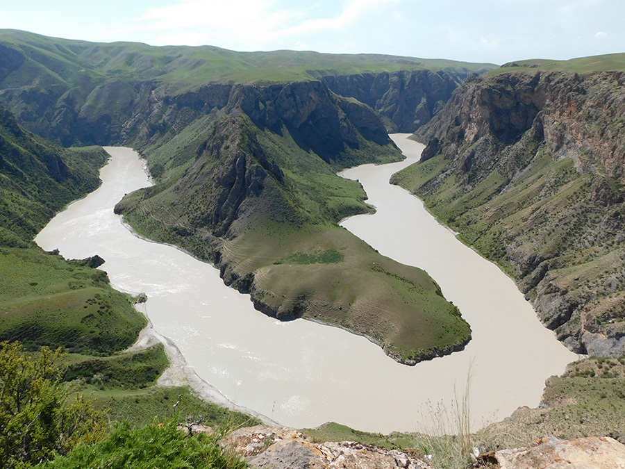 濶克蘇大峽谷を象徴する風(fēng)景は鰐灣と呼ばれる、濶克蘇河が逆向きに流れを変える鰐のような姿の山と川の風(fēng)景です。まるで鰐(ワニ)が水を飲んでいるような姿なので鰐灣と呼ばれています。那拉堤は“三面青山列翠屏”、三方を緑の山に囲まれた大草原です。蒙古語では“緑色谷地”、カザフ語では“白陽坡(傾斜地)”といわれます。古代、成吉思汗(ジンギスカン)が西域に遠征した時、一面が花に覆われた緑の大草原を見て“ナラテー”(おお緑の谷よ?。─冉肖螭扦饯蚊膜い郡趣い铯欷皮い蓼埂D抢滩菰驓iいていると、荒涼としたゴビ砂漠やジュンガル盆地を越え、伊梨河谷に著き、オオー!ナラテー”と叫んだ成吉思汗の気持ちがわかるような気がしました。