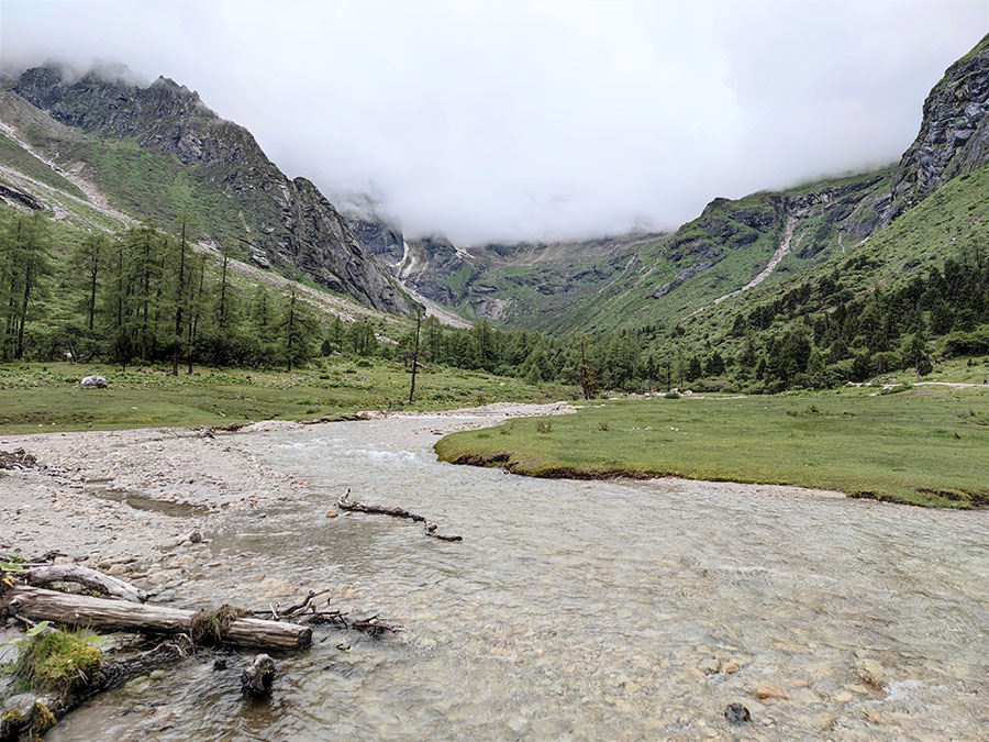畢棚溝は有名な四姑娘山の北部にあり、その麓にある長(zhǎng)坪溝とつながっています。畢棚溝から長(zhǎng)坪溝まで歩くなら途中2泊のテント泊です。いつか行ってみたいと思い畢棚溝を後にしました。畢棚溝から車で2時(shí)間半ほど走ると黒水という街があり、近くには達(dá)古氷河があります。氷河のところまでロープウェイで手軽に行け、レストハウスもあり、そこでコーヒーとケーキセットを食べました。標(biāo)高4,860m、多分、世界最高度のコーヒーケーキセットでしょう。黒水の近くにはチベット族の村、羊茸哈徳(ヤンロンハデ)があります。村には不思議なチベット仏教の施設(shè)、祭具が多くあり、それを見(jiàn)ているだけで時(shí)が過(guò)ぎるのを忘れます。羊茸哈徳は“神仙が住む村”の意です。