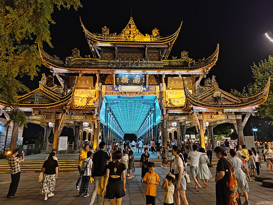 成都に戻る途中、世界文化遺産の都江堰に寄り、成都平原を流れる岷江(ミンチャン)にかかるライトアップされたすばらしい南橋を?qū)懻妞舜椁辘蓼筏俊?/p>