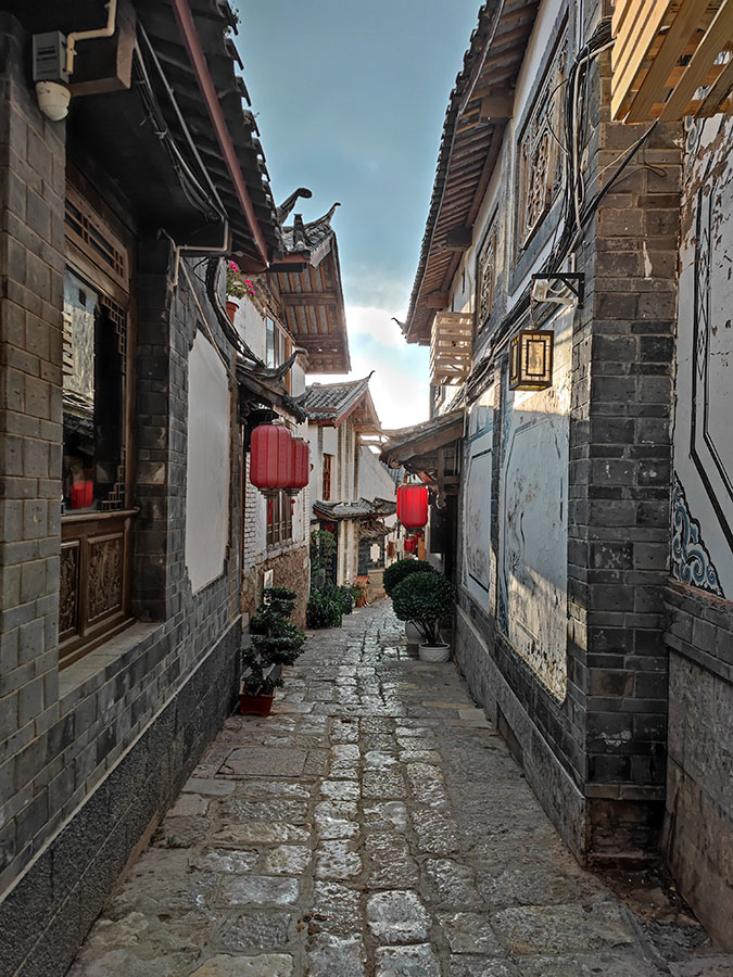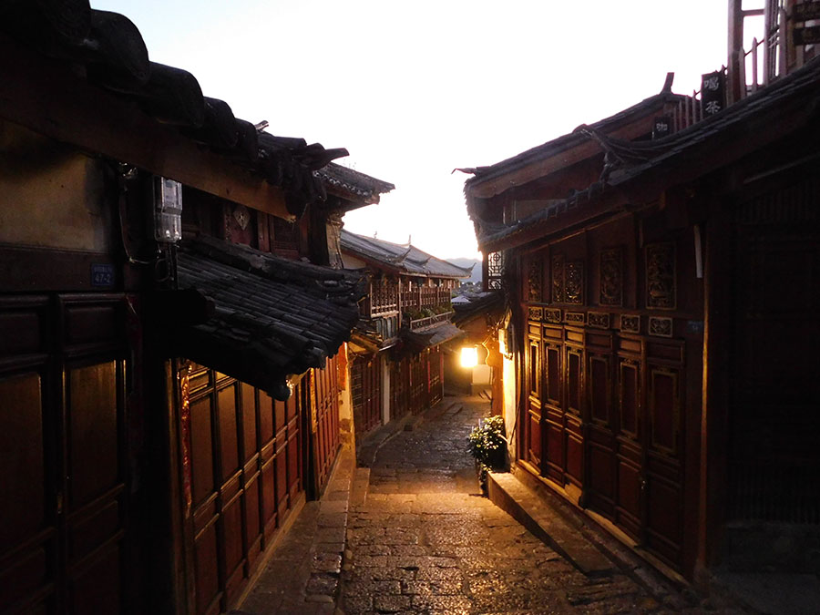 雲南省の麗江はすばらしい街です。朝早く街の大通りを歩くと朝日に輝く玉龍雪山が見え、夜の暗い時間に麗江に著いた旅人はその山の姿を見ただけでも大きな感動を覚えます。