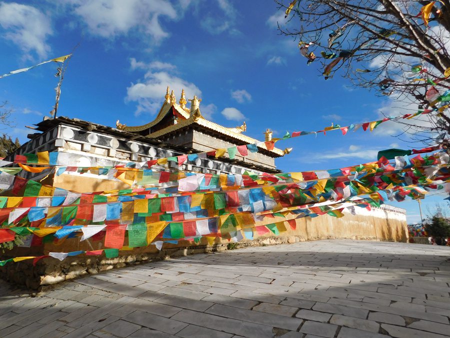 雲(yún)南省の北西部、迪慶の香格里拉(シャングリラ)は海抜3,300mの高地の街です。香格里拉は藏語(yǔ)で“心中的日月”、心の中の太陽(yáng)と月の意で「月光城」と呼ばれ、藏(チベット)族、納西(ナシ)族、白族など10の民族が暮らしています。雪山、峽谷、草原、湖、原始林に囲まれた盆地のシャングリラは浄土のようなところで、チベット仏教「カーラチャクラ?タントラ」の香巴拉精神、香巴拉文化を受け継ぐ街です。香巴拉はチベット語(yǔ)で「幸福の森」でチベット仏教の理想の浄土、仙境です。