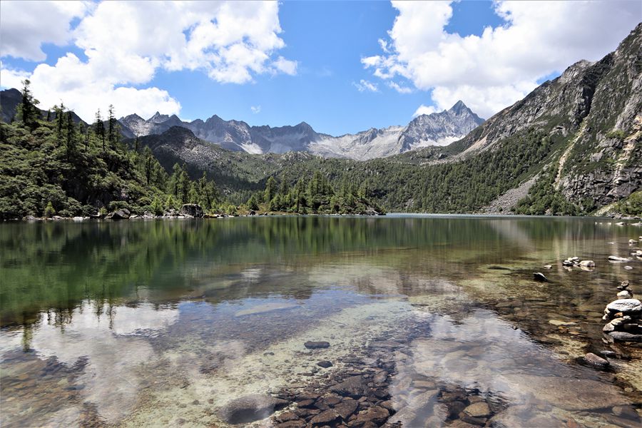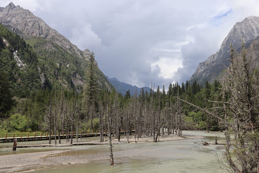 身體を慣らすため初日は、丹巴地方、黨嶺村の海抜4,200mにある仙境の湖、葫蘆海に登りました。黨嶺村は海抜3,347mなのでおよそ850mを登りました。二日目は移動(dòng)して四姑娘山の麓まで行き、三日目に四姑娘山の麓の渓谷、長(zhǎng)坪溝を歩きました。