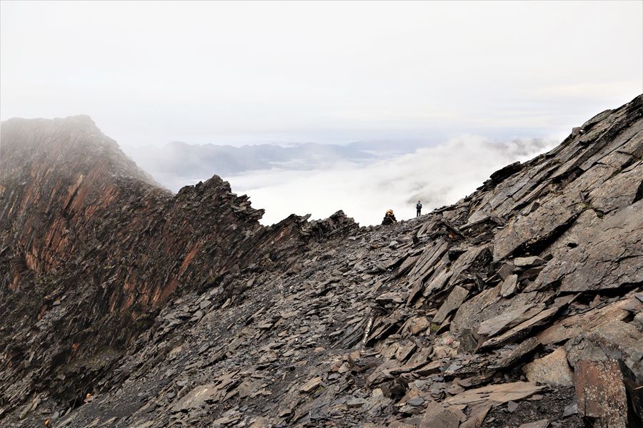 そして四日目の朝早く四姑娘山鎮(zhèn)を出発し16㎞先の大本営キャンプ地への山道を登りました。四姑娘山鎮(zhèn)の海抜は3,150mほど、大本営は4,379m、大峰が5,025mで高低差1900mを二日かけて登ることになります。主に尾根筋を歩き、途中急な道もありますが、距離が長(zhǎng)く時(shí)間はかかりましたが、おおむね快適な山歩きでした。しかし夕刻から雨が降り、夜は強(qiáng)い雨がテントを打ち続け一睡もできずに朝三時(shí)に出発し山頂を目指しました。しかし前日までの無(wú)理がたたったのか、山頂直下の4900mほどで足が上がらず、引き返しました。幸い山頂付近は霧で何も見(jiàn)えませんでしたが。下山途中、前を歩く地元ガイドの姿が雲(yún)の上の稜線(xiàn)に見(jiàn)え、その崇高な姿が今も目に焼き付いています。