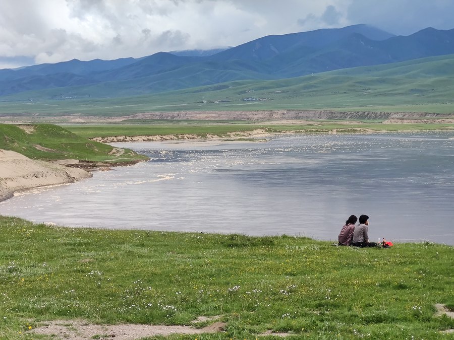 黃河を渡ると河畔の草原で戀人同士が黃河を見ながら語らっていました。雄大な黃河を前に戀人が語り合う。なんと素晴らしい光景だろうと思いシャッターを切ると、手を振って答えてくれました。