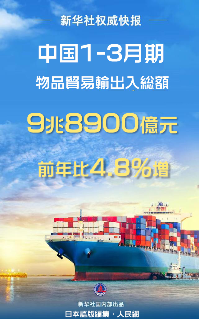 1-3月期の輸出入をそれぞれ見(jiàn)ると、輸出は同8.4%増の5兆6500億元、輸入は同0.2%増の4兆2400億元だった。稅関総署統(tǒng)計(jì)分析司(局)の呂大良司長(zhǎng)(局長(zhǎng))は、「全體として見(jiàn)ると、第1四半期の中國(guó)の対外貿(mào)易の輸出入は強(qiáng)靱性を示し、安定して好転するスタートとなり、通年の対外貿(mào)易の安定促進(jìn)と質(zhì)向上に向けた基礎(chǔ)を打ち立てた」との見(jiàn)方を示した。