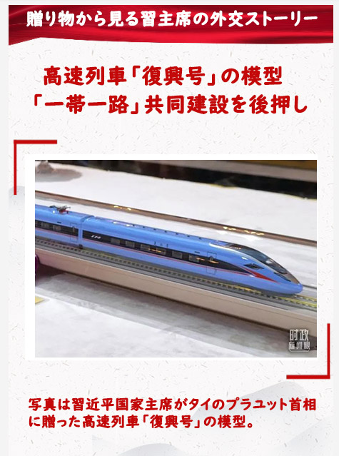 2022年11月17日から19日にかけて、中國の習近平國家主席はタイを訪問し、バンコクで開催されたアジア太平洋経済協(xié)力會議(APEC)首脳會議に出席した。これは習主席にとって中國の國家元首として初の訪タイとなった。このタイ訪問で、習主席は高速列車「復興號」の模型を贈り物として攜えていった。