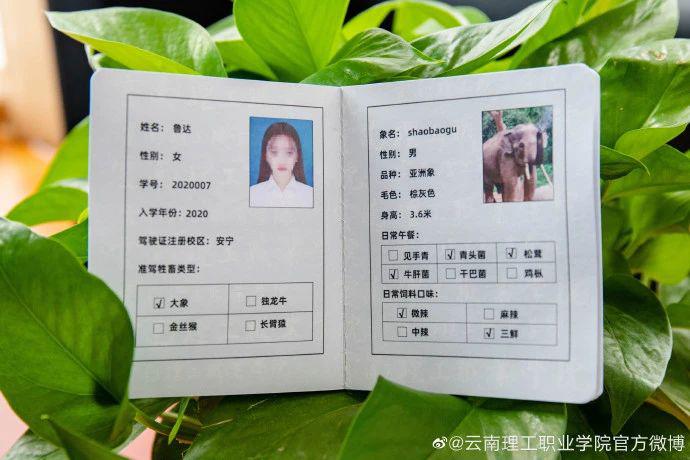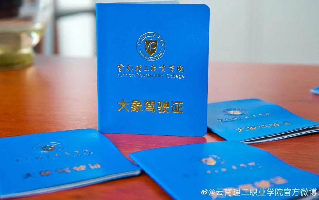 雲(yún)南理工職業(yè)學(xué)院は、一部の新入生に「ゾウの運(yùn)転免許証」を贈(zèng)呈している。