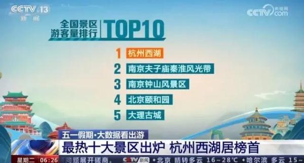 4月29日0時から5月1日16時までの全國景勝地観光客數(shù)ベスト10は次の通り。1位:杭州?西湖景勝地、2位:南京?夫子廟-秦淮風光帯景勝地、3位:南京?鐘山景勝地、4位:北京?頤和園、5位:大理?古城、6位:西安?大雁塔と大唐芙蓉園、7位:済南?天下第一泉景勝地、8位:武漢?東湖景勝地、9位:北京?オリンピック公園、10位:北京?天壇公園。(編集KS)