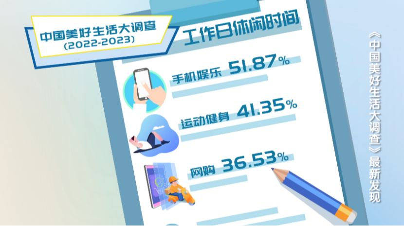 中國人は仕事をしていない余暇時間をどのように過ごしているだろうか。2022-2023年「中國の素晴らしい生活大調(diào)査」によると、中國人にとって平日の余暇時間の3大選択肢は、▽スマートフォンでの娯楽▽スポーツ?トレーニング▽ネットショッピング、だという。