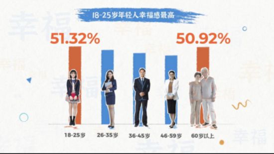 調(diào)査によると、普段の暮らしにおいて幸せを最も感じやすいのは18-25歳の若者で、60歳以上の高齢者がその後に続いた。