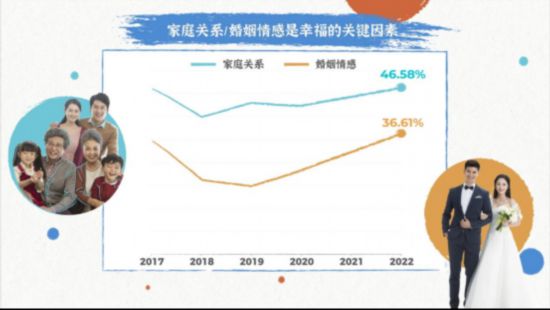 幸福感に影響を與える要素を見ると、「家族との関係」や「夫婦関係」がここ6年で最高となった。また、結婚して子供ができると、幸福指數(shù)が上がり、子供が2人いる家庭の方が指數(shù)が高かった。