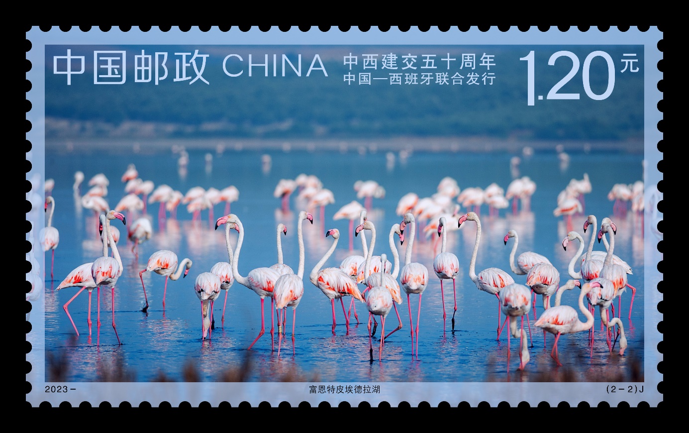 中國(guó)とスペインの國(guó)交樹立50周年を記念して、中國(guó)郵政は今月10日、「中國(guó)スペイン國(guó)交樹立50周年」特別記念切手を発行した。スペインと共同で発行したこの切手は2枚セットで、スペインのフエンテ?デ?ピエドラ湖と中國(guó)の衡水湖がデザインされており、両國(guó)の美しい湖の風(fēng)景と自然の特徴が強(qiáng)調(diào)されている。
