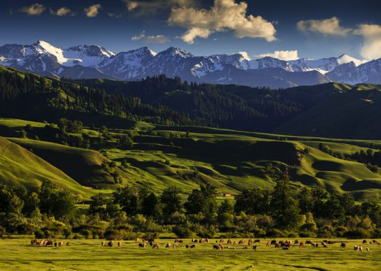 伊犁(イリ)を訪れたなら、白い雪が積もる山の峰や緑の木々が茂る森林、どこまでも広がる大草原といった大自然を楽しみ、さらには遊牧民族の文化も楽しむことができる。
