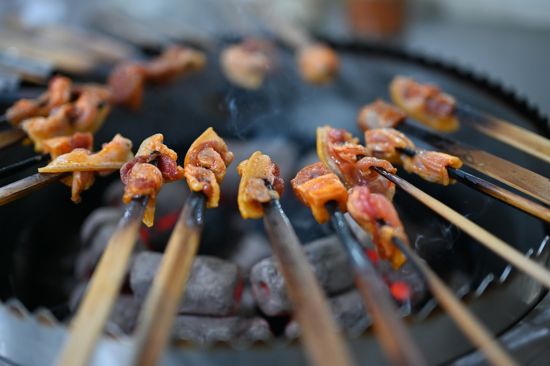 火鉢で焼く肉の串焼き「火盆焼烤」は秘蔵の地元グルメ。秘蔵のレシピで作られる串焼きは、ここでしか絶対に味わうことのできない絶品だ。