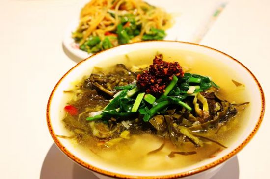 天水市のご當(dāng)?shù)廿哎毳帷笣{水麺」は、「酸菜飯」とも呼ばれる伝統(tǒng)的な麺料理。発酵させた漬物?酸菜を唐辛子などと一緒に炒めてスープを作り、麺にかければ出來上がり?!杆岵孙垺工蚴长伽毪取ⅳ丹盲绚辘趣筏课钉铯い?、のどの渇きもいやされ、體の熱を取り除き、暑さ対策にもなるという。