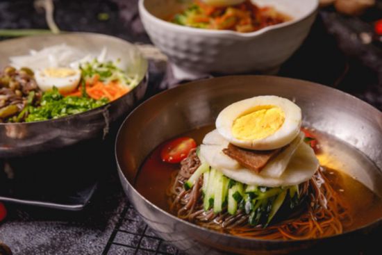 延辺の冷麺は辛味の中にも甘みを感じることができ、さっぱりした味わい。ひんやり冷えた蕎麥粉の麺の上に牛肉や鶏肉のつみれ、キュウリの細(xì)切り、ゆで卵、白菜キムチ、キャベツキムチ、リンゴ、またはナシなどをのせると、ボリューム満點(diǎn)の冷麺が出來上がる。