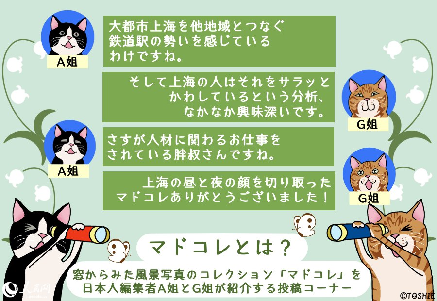 ウチのオフィスの窓からは、こんな風(fēng)景またはこんなモノが見えると自慢していただく「マドコレ(窓から見た風(fēng)景コレクション)」コーナー。どこまでも続く青い空や遠(yuǎn)くに見える山々といった自然の風(fēng)景から、オフィス街に建ち並ぶ高層ビルや幹線道路を走る車、庶民の暮らしが垣間見えるローカルな街並み、はたまた移動(dòng)中の車窓からの眺めなどなど、高さや場(chǎng)所も異なれば、その窓から眺める風(fēng)景も千差萬別。中には仕事の意欲をアップさせてくれる元?dú)荬纬訾牍饩挨猡ⅳ欷小⑵¥欷虬Kしてくれるほっこりした風(fēng)景も。そんな皆さまからお寄せいただいたマドコレの數(shù)々を、毎週火曜日に、人民網(wǎng)日本人編集者のA姐とG姐がコメントしながら、のんびり紹介していきます。