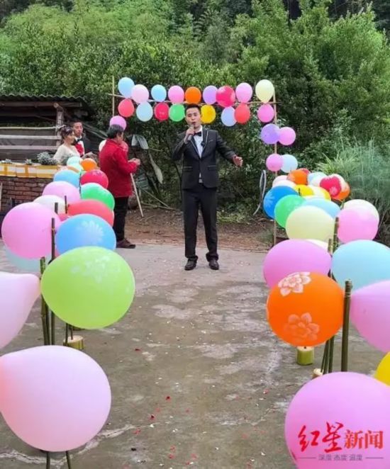 「30年前に両親が結(jié)婚した時、ウエディングフォトも撮らず、結(jié)婚式も挙げず、婚姻屆を提出しただけだった」と話す四川省栄県の男性?何咚咚さんは、「母の日」のサプライズプレゼントとして、そして両親の結(jié)婚30周年を祝うために、県の行政中心地に両親を連れて行き、ウエディングフォトを撮影。さらに、バショウの木や風(fēng)船、竹などを使って準備した「結(jié)婚式會場」で、「結(jié)婚式の動畫」を撮影した?!弗侃`ルガール」はおばあちゃんが擔當し、司會者は何さん自身が擔當。両親が30年前に味わうことができなかった「セレモニー感」を演出した。
